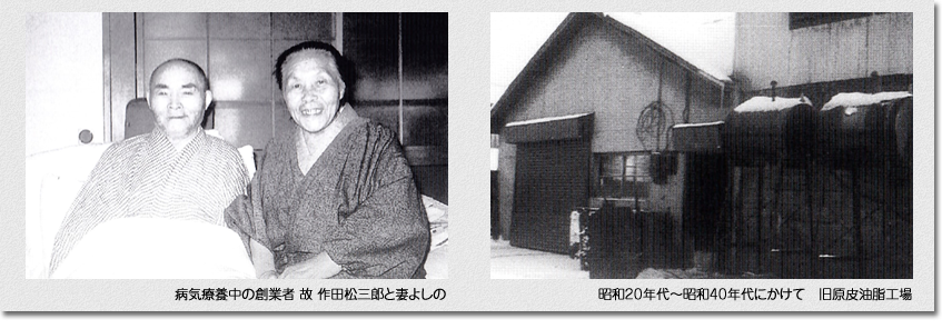 弊社は、創業者作田松三郎が東北七戸近郊(馬産地)にて17人兄弟の次男として生まれ、尋常小学校を終えるとすぐ北海道根室に家畜商として入植し帯広に移住、そして旭川に拠点を移した大正六年、現在地に作田商店として創業いたしました。松三郎は当時内地より来道し一山当てようとした沢山の入植者の1人でした。松三郎は、当時の入植者のトレードマークのように飲兵衛で博打好きでは無く、博打も打たない酒も嗜む程度、仕事一筋の真面目な働き者でした。後に2代目社長作田良治は、朝仕事場にどんなに早く行っても先代はいつも仕事をしていたと、何時寝ているのか不思議だったと回顧していました。又、松三郎の子供9人の内、男5人兄弟は家業の仕事の手伝いが終わると兄弟が一人ずつ母よしのの管理している帳場に忍び込み金庫から小切手帳を1枚盗んで勝手に金額を書き入れ換金してこずかいにする事やラード製造工場からラードを1缶盗んで換金して遊ぶ資金にしていたと言う事でした(当時ラード1缶売ると4、5人で一晩中遊んで歩けた時代でした)戦前、戦中の作田商店時代の隆盛を極めた頃の逸話です。真面目で世話好きが功を奏し見る見る内に仕事仲間の中で頭角を現し大正末期から昭和の初めには、宗谷管内の広大な牧場を初め各地の農牧地を取得し道内各地に小作人や集荷代理人を置き北海道一円の農耕馬、軍馬、牛を集荷し主に大日本帝国陸軍や関東軍の軍馬や兵站、缶詰会社の原料物資調達の一翼を担い遠くは樺太、満州へと取引を拡大致しました。家畜集荷仲買、牧場経営の傍ら昭和5年頃には現地で油脂製造業、北海化成工業を創業、養豚事業や牛豚枝肉卸にも着手しました。終戦後、GHQによる不在地主解放で所有する各地の農牧場等の大部分を失い、主な業態を牛馬生体集荷販売から徐々に戦前より手掛けていた畜産、油脂製造、原皮販売、食肉卸、小売りへと軸足を移し川上から川下へと変換して参りました。